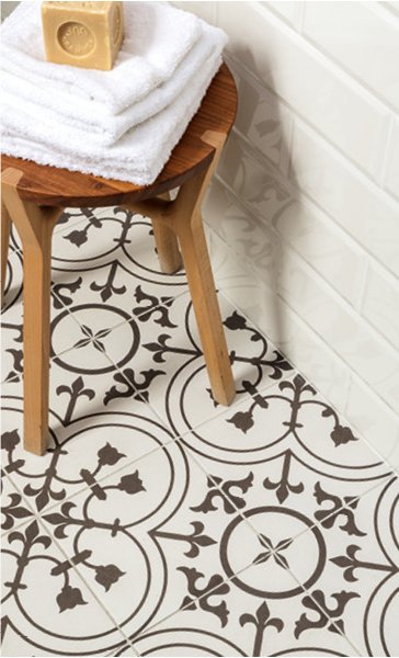 - patiné : la surface du carreau reste irrégulière, veloutée au toucher, pas tout à fait brillante.