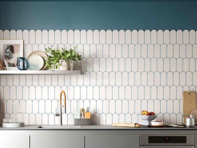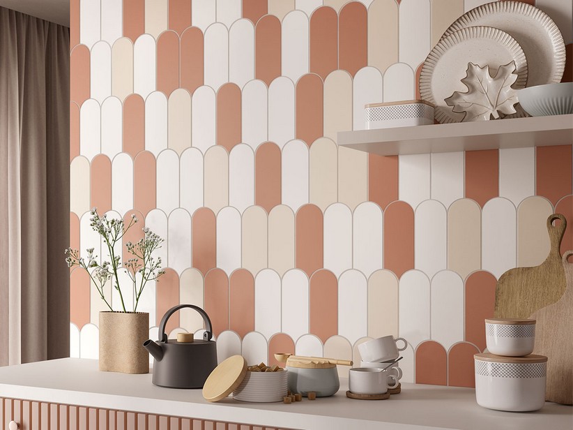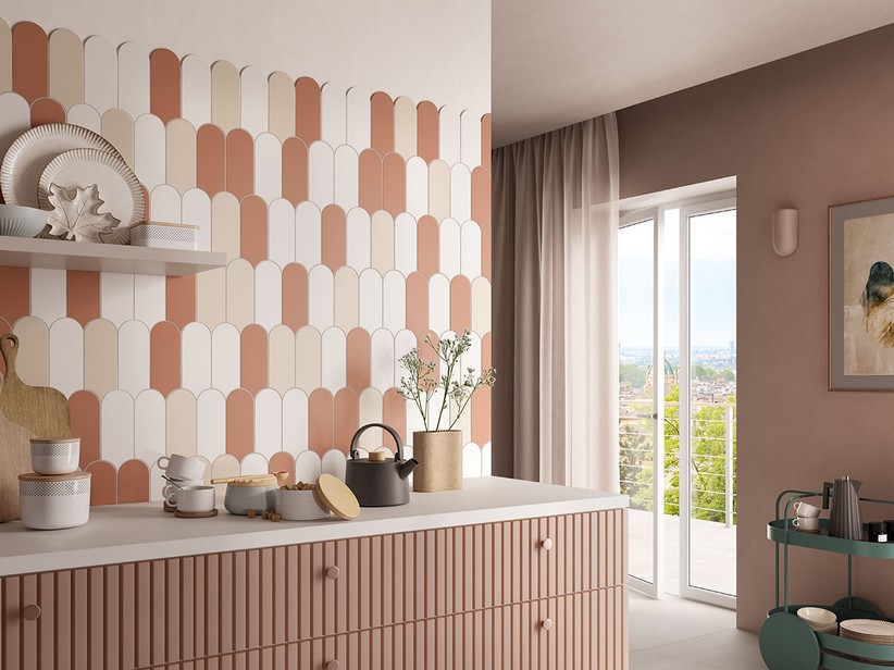 Ce type d’installation met en valeur la variété chromatique et le format distinctif du carrelage, créant des surfaces dynamiques, personnalisées et expressives.