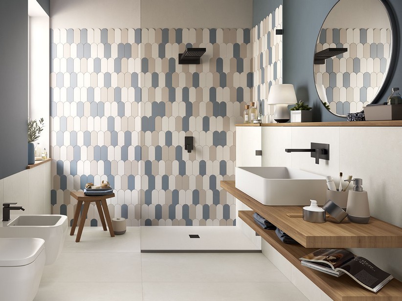Pour ceux qui recherchent une solution chromatique dynamique, Iperceramica propose 3 combinaisons mix équilibrées et harmonieuses : Milk et Almond comme base neutre, associées à une troisième teinte au choix (Phard, Blue ou Mint).