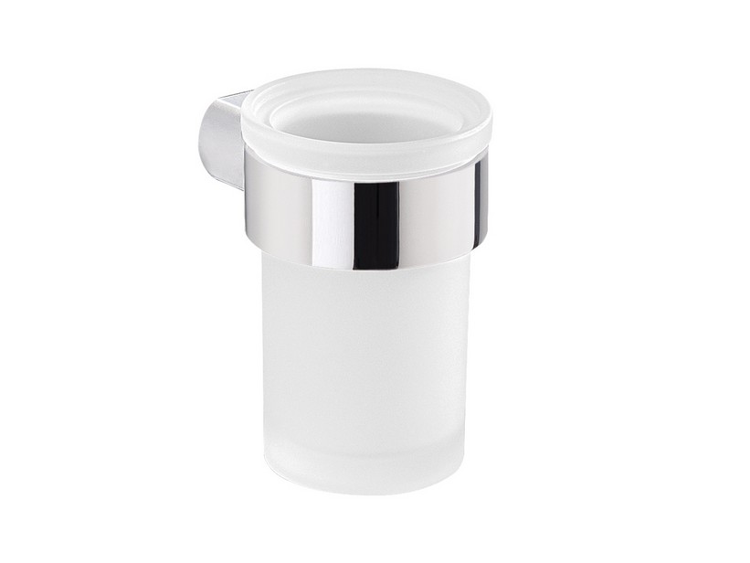 LILY gobelet pour brosse à dents chrome. Réalisé en acier inoxydable et Cromall®, avec des contenants en verre satiné. Le Cromall® est un revêtement de surface qui associe l'acier inoxydable à un revêtement en chrome, créant un matériau à la fois résistant et durable.