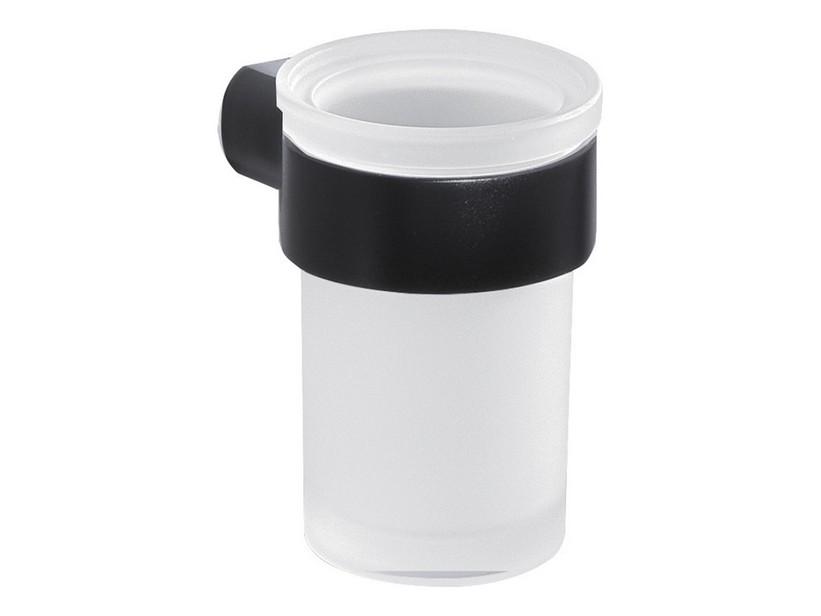 LILY gobelet pour brosse à dents noir mat. Réalisé en acier inoxydable et Cromall®, avec des contenants en verre satiné. Le Cromall® est un revêtement de surface qui associe l'acier inoxydable à un revêtement NOIR MAT, créant un matériau à la fois résistant et durable.