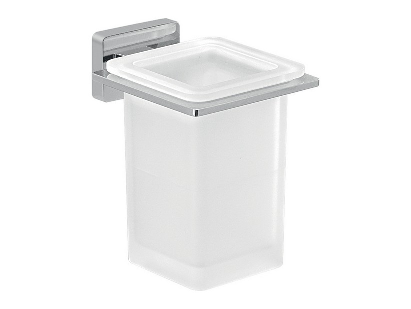 ROSE gobelet chrome. Réalisé en acier inoxydable et Cromall®, avec des contenants en verre satiné. Le Cromall® est un revêtement de surface qui associe l'acier inoxydable à un revêtement CHROME , créant un matériau à la fois résistant et durable.