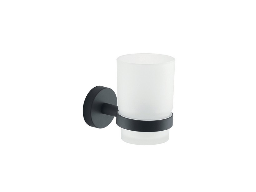 TULI gobelet noir mat. Réalisé en acier inoxydable et Cromall®, avec des contenants en verre satiné. Le Cromall® est un revêtement de surface qui associe l'acier inoxydable à un revêtement NOIR MAT, créant un matériau à la fois résistant et durable.