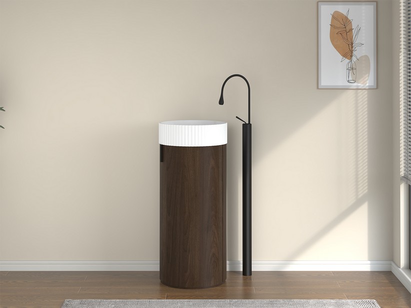 Meuble de salle de bains Tide 40 cm 1 porte en bois multiplis noyer avec lavabo en Solid Surface blanc mat