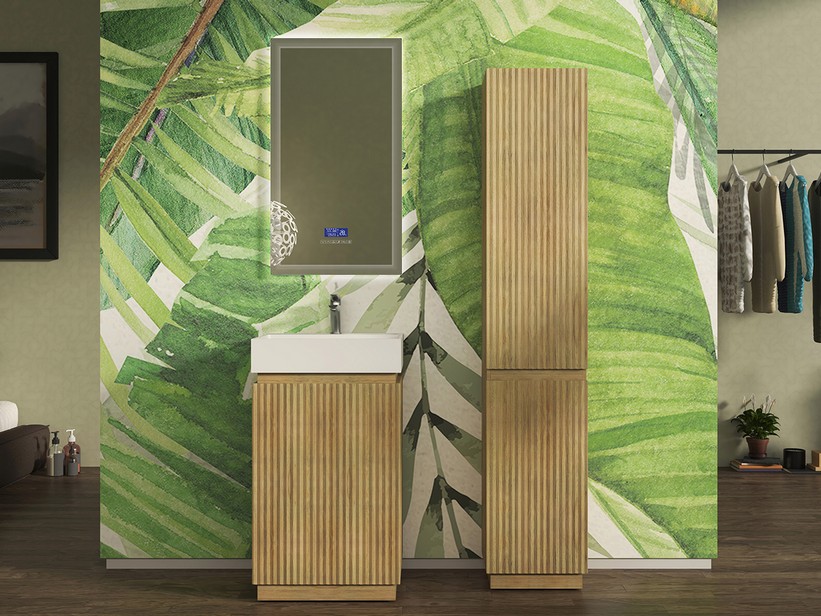 Meuble salle de bains à poser FARO 50 cm cannelé chêne tabac et lavabo Unitop en résine TRIBECA blanc mat