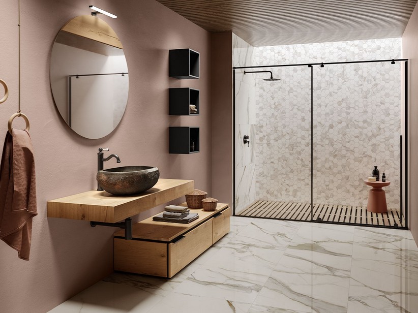 Carrelage salle de bains grès cérame effet marbre rendu miroir rectifié - Calacatta Gold