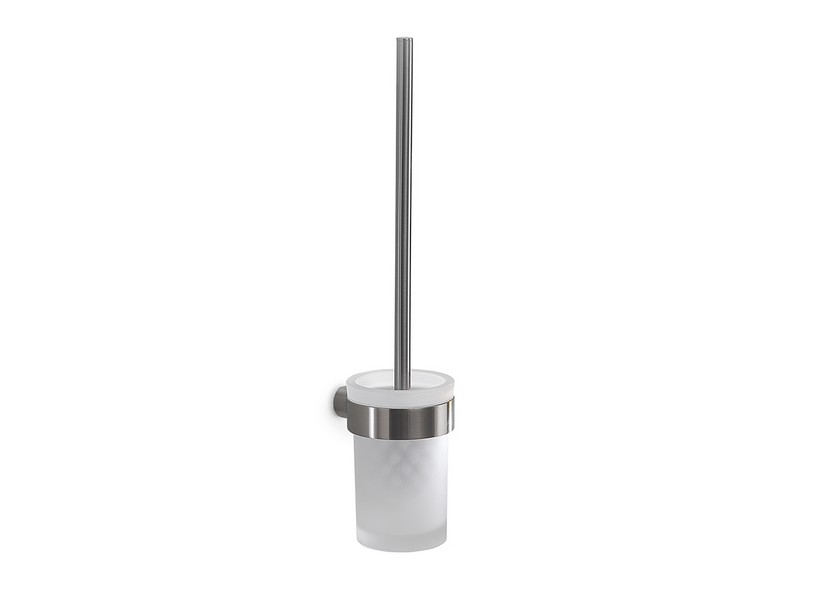 LILY porte-balai chrome brossé. Réalisé en acier inoxydable et Cromall®, avec des contenants en verre satiné. Le Cromall® est un revêtement de surface qui associe l'acier inoxydable à une finition CHROME BROSSÉ, offrant un matériau à la fois résistant et durable.