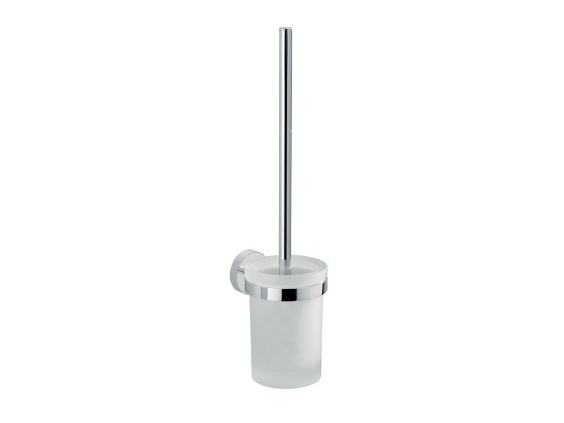 TULI porte-balai mural chrome. Réalisé en acier inoxydable et Cromall®, avec des contenants en verre satiné. Le Cromall® est un revêtement de surface qui associe l'acier inoxydable à un revêtement CHROME, créant un matériau à la fois résistant et durable.
