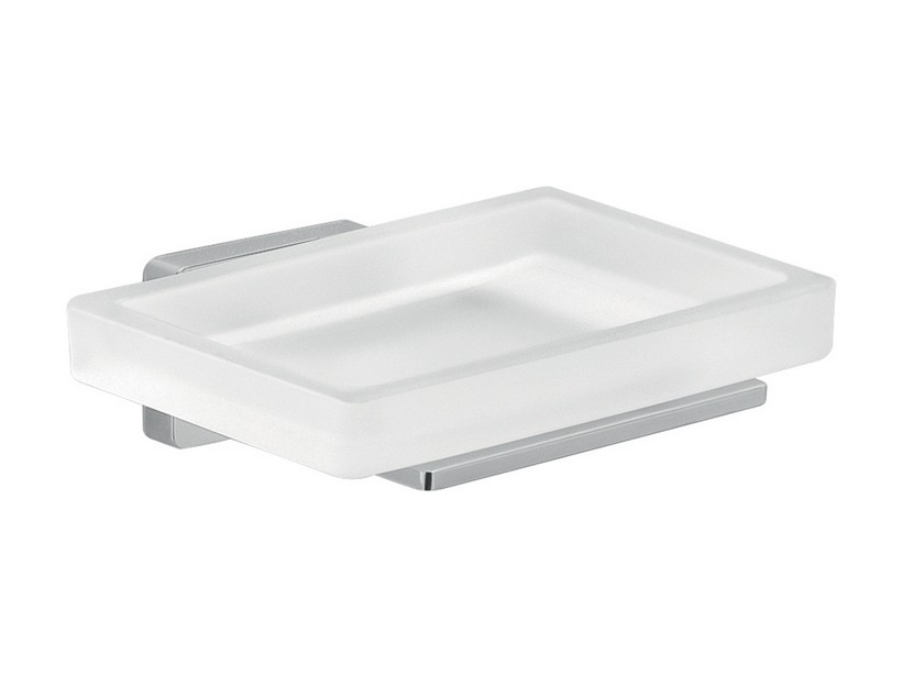 ROSE porte-savon chrome. Réalisé en acier inoxydable et Cromall®, avec des contenants en verre satiné. Le Cromall® est un revêtement de surface qui associe l'acier inoxydable à un revêtement CHROME , créant un matériau à la fois résistant et durable.