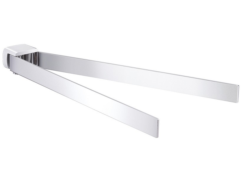 LILY porte-serviette articulé chrome. Réalisé en acier inoxydable et Cromall®, avec des contenants en verre satiné. Le Cromall® est un revêtement de surface qui associe l'acier inoxydable à un revêtement en chrome, créant un matériau à la fois résistant et durable.