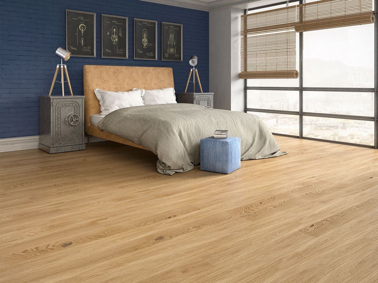 Chêne : ce type de bois se caractérise par sa durabilité, son excellente résistance mécanique, sa capacité à résister aux attaques des champignons et des moisissures et son vieillissement lent. D'un point de vue esthétique, les sols en chêne sont très élégants, grâce à leur grain irrégulier et à leur variété chromatique ;